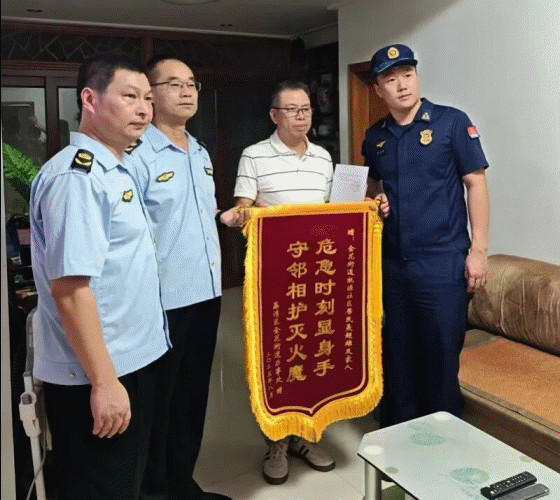 原来,65岁的聂超雄退休前在纺织厂工作,当年辖区消防大队曾组织过工人学习室内消火栓的使用方法,多年过去,这项技能竟在关键时刻派上了用场。为表彰其见义勇为的行为,荔湾区消防救援大队特地为聂超雄送上了锦旗和感谢信。